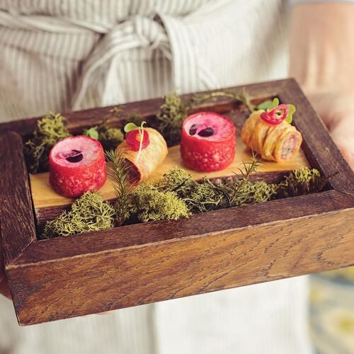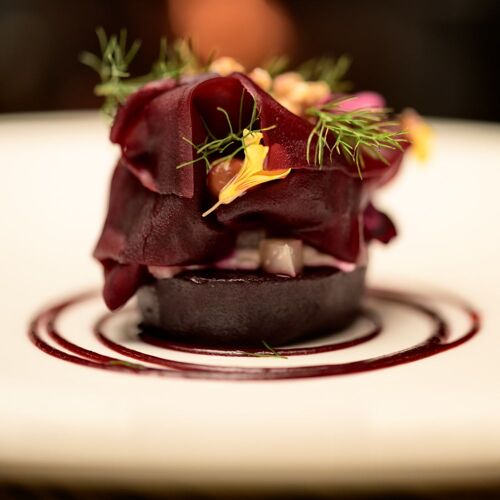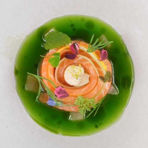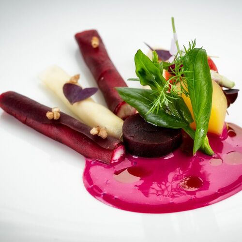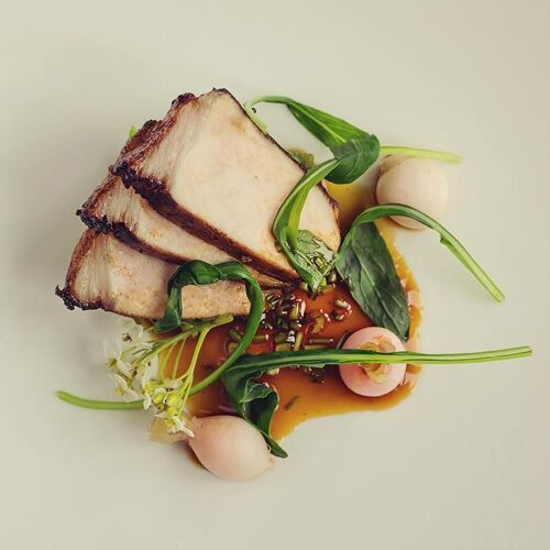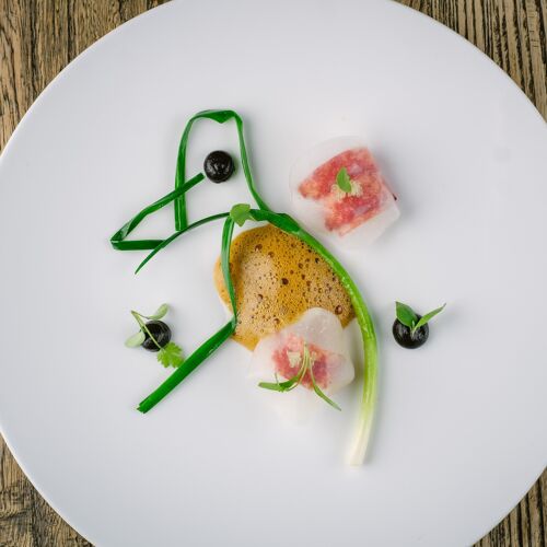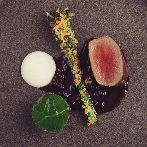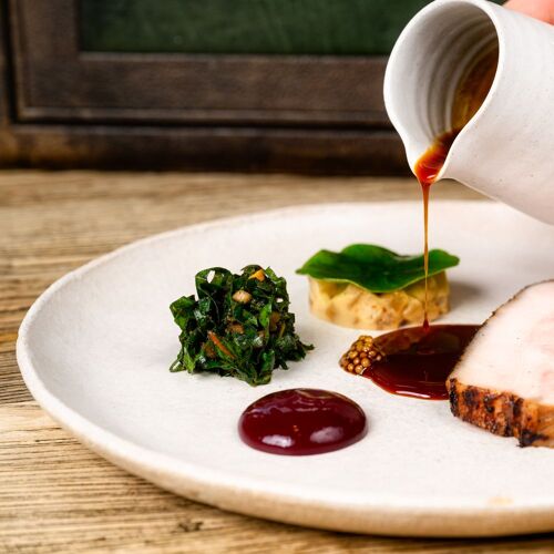 Relax by the fire in the cosy sitting room of this 14C pele tower, while enjoying canapés and perusing the hugely impressive wine selection from the estate cellars; then head through to the modish, country kitchen style restaurant with its unique tiled floor and garden views. Accomplished dishes are driven by the seasons and the availability of produce from the surrounding Lowther Estate, with the gardener playing a key role in the crafting of the menu. Sauces are a highlight and really elevate each dish.