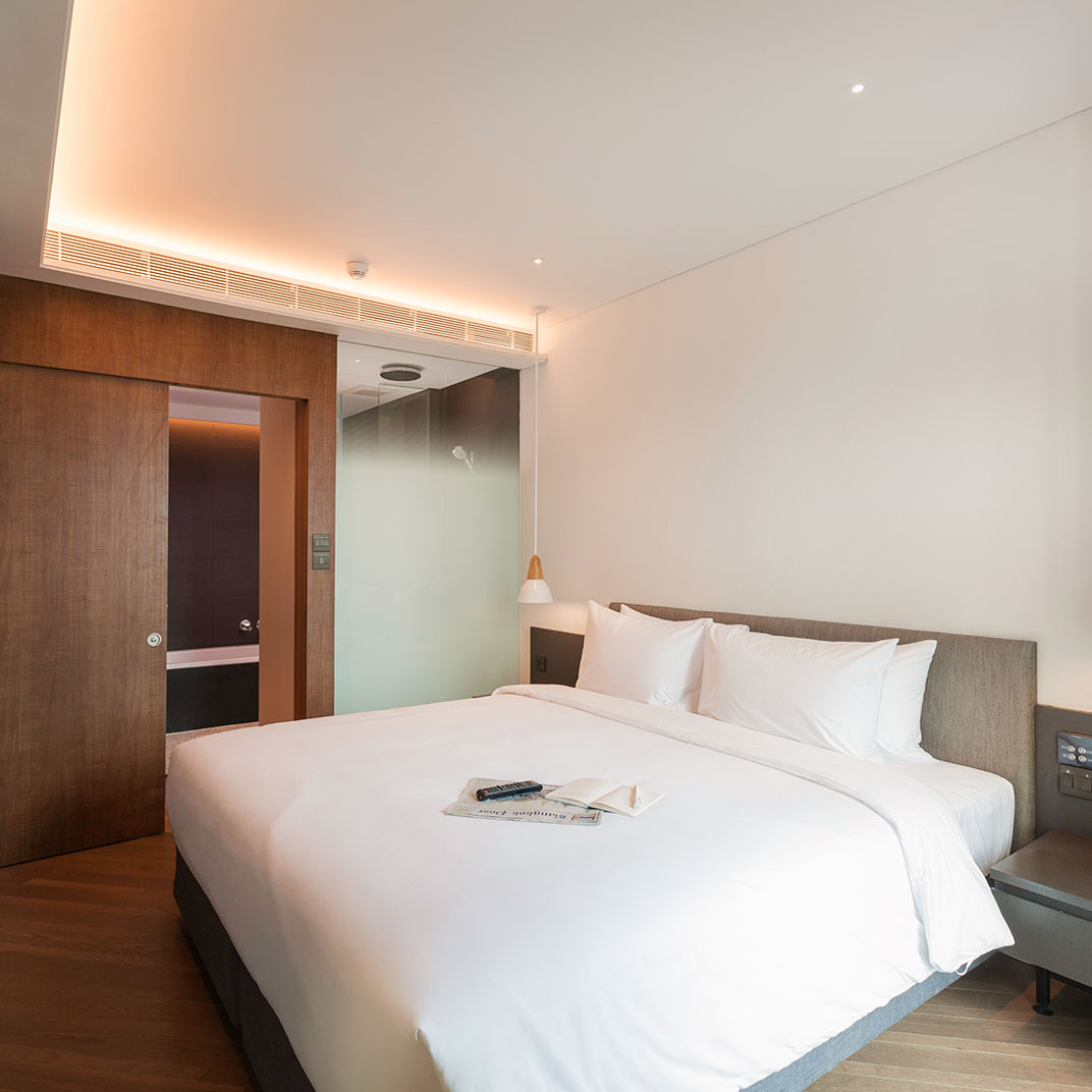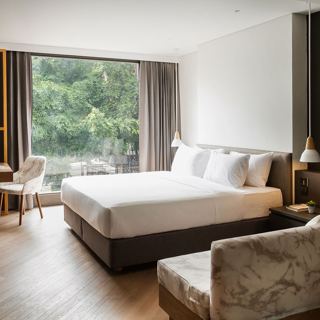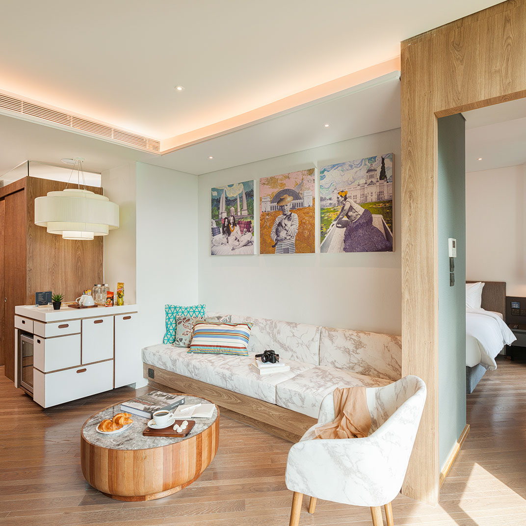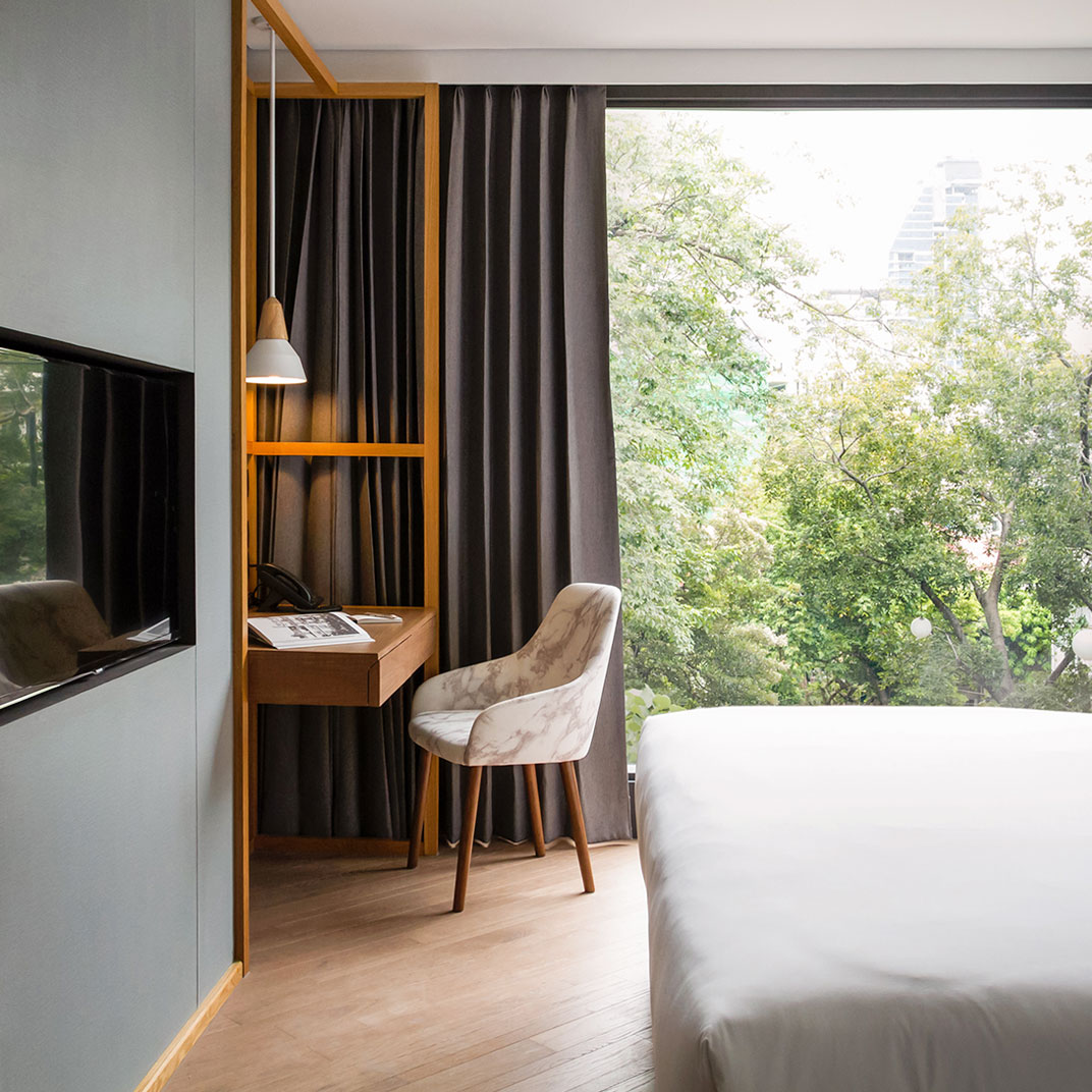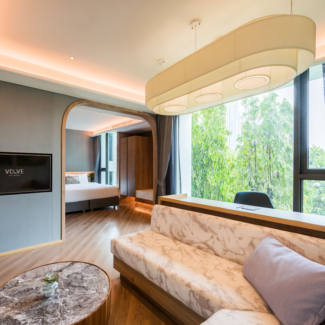 While Thailand in general and Bangkok in particular are world-renowned travel destinations, the capital city’s hotel scene has largely been dominated by big luxury hotels — some global brands, some homegrown. Volve Hotel Bangkok, then, is an outlier: a boutique hotel of just 28 rooms, where the scale is small, the welcome is personal, and the design is thoughtful, mixing contemporary-luxe elements with unique commissioned artworks and a touch of the whimsy that’s essential for making a hotel look stylish but not too precious.