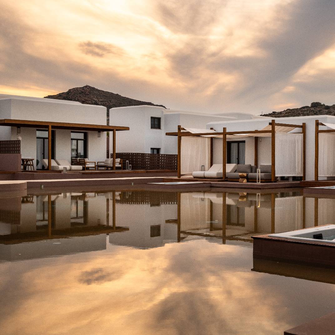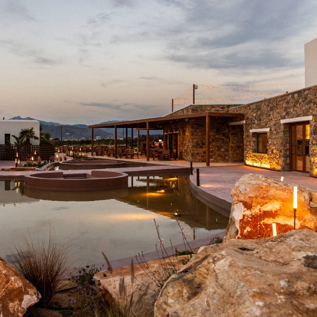 The Greek islands have never been more popular with travelers, but there’s a downside to the surging tourism numbers. One hotel that’s dedicated to offsetting the environmental impact is Laguna Coast Resort, on the west coast of Naxos, part of the largest regeneration project in the Cyclades. This luxury hotel is intimately sized, especially in comparison to the protected reserve it sits on — spanning some 480 acres of wetlands, an offshore reef and islet, and a mile of private coastline, this wildly beautiful landscape is a natural habitat for flamingos and rare birds.