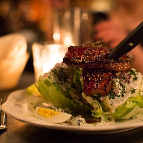 Steakhouse and raw bar standards dominate the menu. Most steaks are wet-aged and though some may prefer more funk, the cuts are expertly broiled. Perfectly rendered steak frites served with a buttery béarnaise sauce is a great way to go. But, the kitchen deserves praise for other, more unexpected options like fresh-baked crab cake with remoulade; or creamy short rib stroganoff bobbing with hand-cut pasta.