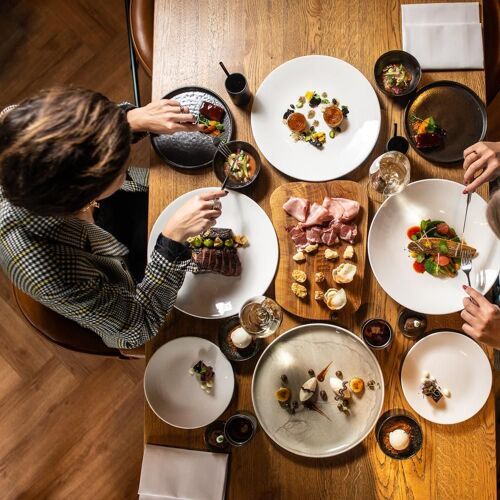 This former school has been transformed into a warm, urban restaurant, including a graffiti portrait of Don Corleone! You can see the chefs working their magic in the open kitchen, where they create Italian and Mediterranean dishes full of creativity and nuanced flavours. The risotto puttanesca and the conchiglioni served with game stew and a rich jus are intensely flavoured dishes. Thanks to the wide range of sharing dishes and snacks, and the possibility of ordering half portions of the pasta dishes, you can decide how lavish your meal will be. The fabulous Italian wine library is also a hit, with quite a few guests coming in simply for a nice glass of wine or a cocktail. Cosy!