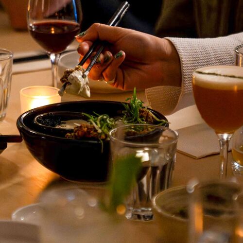 At Honō Izakaya – honō means "flame" in Japanese – the grill reigns supreme. In a minimalist interior softened by pale wood, diners enjoy Japanese cuisine at wallet-friendly prices. Here, they don't serve sushi, but tataki, sashimi and tempura… and a fine selection of yakitori, the house speciality: miso-marinated salmon, house-made chicken sausage and confit duck heart. Presented on small plates for sharing, the dishes stand out for the quality and perfect cooking of the ingredients.
