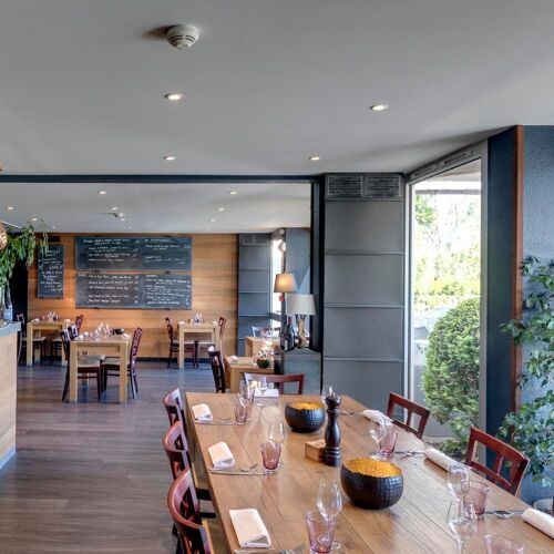 This elegant bistro, helmed by Franck Barbier, chef, and Luc Brunner, sommelier, sports a contemporary interior bathed in light with a view of the park. Up-to-the-minute, indulgent recipes: Tahitian-style tartare of tuna, roast breast of poultry, apricot crumble with Bulgarian ice cream. Well-curated wine list, spot-on service and lovely alfresco area.