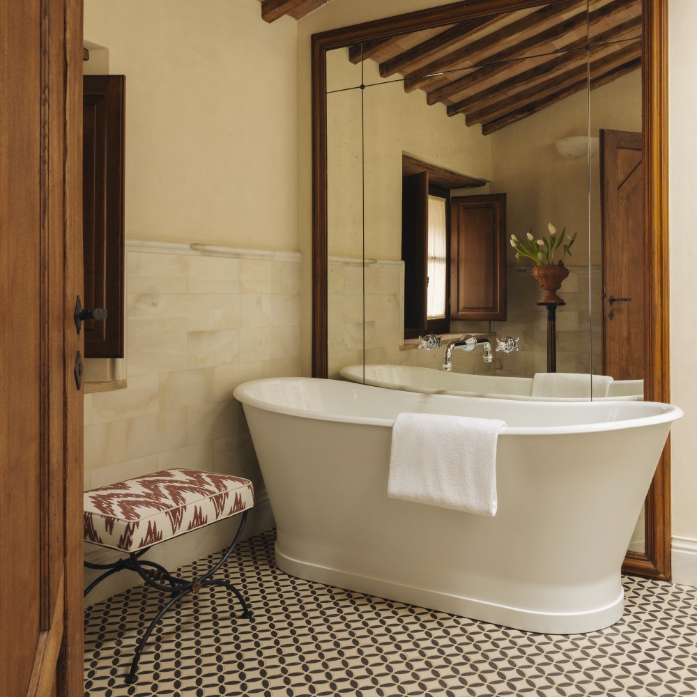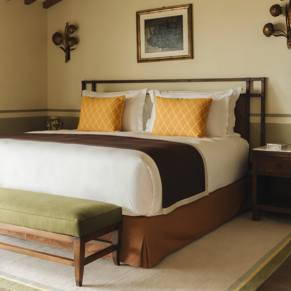 Most suites stick closely to the stylistic parameters of the old castle, whether in the main building, the old priest’s quarters or the outlying farm buildings. Nine of them, though, the Oliveto Suites, are strikingly contemporary, an opportunity for the Castello to flex its modern-design muscles. They differ mostly in the aesthetic dimensions, however — comforts are consistent throughout, though there’s more space if you need it: a pair of villas and seven secluded farmhouses round out the accommodations.