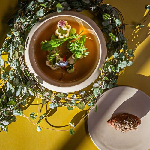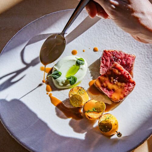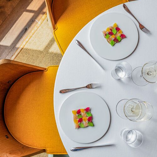 This ambitious atelier sets its sights on a culinary exploration of the Mediterranean, studiously delving into individual regions one by one, from the Maghreb in Northwest Africa to Murcia and Andalusia in Southern Spain, to Greece, with a tasting menu and beverage program inspired by each cuisine in turn. But if all that sounds a bit precious, rest assured that the experience itself is utterly disarming, with a winning sense of hospitality that makes for a meal that is both engaging and luxe. Guests start with finely tuned cocktails and first bites in the stylish lounge area before being whisked into the striking main dining room for more substantial fare. From beginning to end, gorgeously plated dishes show refinement and creativity, so sit back and enjoy the show.