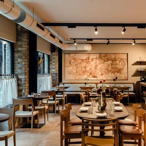 Newson's Yard is a stylish development just off Pimlico Road and among its high-end inhabitants is this split-level restaurant. An open kitchen adds to its homely feel, while the bar tucked under the first-floor eaves is perfect for a cosy drink. There’s a firmly Mediterranean heart to the menu, with the produce-driven and slightly rustic dishes proving to be comforting and full-flavoured. One slice of the homemade focaccia will leave you wanting more and the Italian citrus tart is a refreshing way to end. Genuine, friendly service adds to the joy.