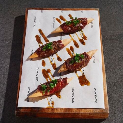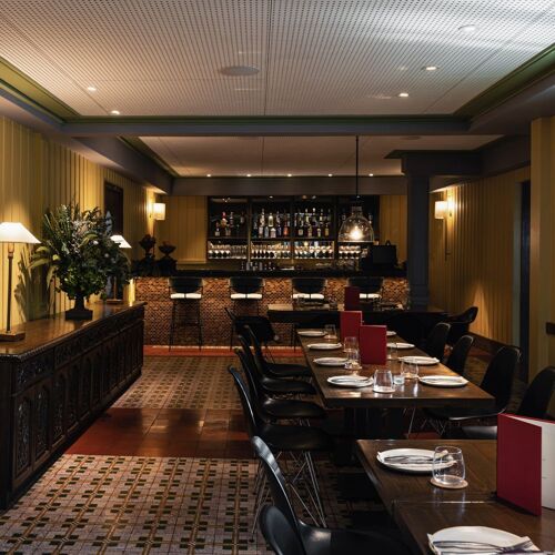 Tucked away on a quiet street in the heart of Quezon, this Spanish restaurant has a green-tiled shopfront selling Spanish specialities and a few tables for casual dining. In a tasteful interior blending wood, patterned tiles and soft lighting for a relaxed yet polished feel, highlights include the ensaladilla de prawns and croquetas de jamón ibérico, best enjoyed with a glass of Spanish wine. The shaded terrace makes for an inviting spot in fair weather.