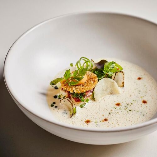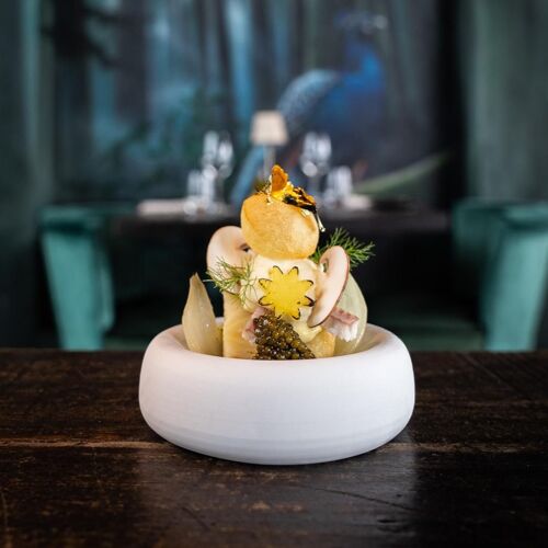"Fine food art" is the culinary promise of chef Lars Scharp and maître d' Floor Wiggers, and one that is delivered on dish after dish. Lars has developed his own creative cooking style and, thanks to his mastery of traditional French cuisine, he really shakes things up. A fusion of rich, complex sauces and cooking techniques results in an intricate style of cuisine. Think yellowtail and North Sea shrimp tartare topped with tom kha gai gel and a vibrant melon and kaffir lime vinaigrette, delivering an intense Thai-inspired flavour profile; or even medium-rare lamb with the umami nuances of a miso and walnut crust, combined with an intense lamb gravy, scallops and stewed lamb. The chef merges European and Asian flavours to form something truly unique. The design of this spacious restaurant – complete with a splendid terrace overlooking the bustling harbour and recent urban developments – is the icing on the cake.