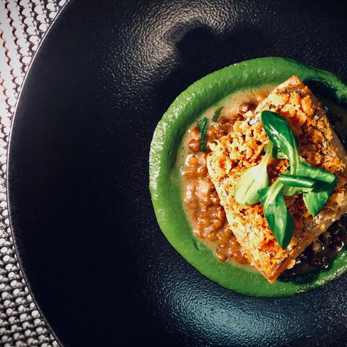 Here in the centre of the village, this duo, whose enthusiasm is infectious, have set up shop in a half-timbered building that sports the Basque Country's characteristic red and white. It was once a Basque pelota ground (the reception still has the old ticket windows and a glass door opening onto the trinquet). Chef Nicolas Montceau and his pastry chef partner Julien Bonnal, who is also in charge of plating up the dishes, swear by local produce. Their multi-course surprise tasting menu in several sequences is a delight, rife with harmonious combinations of flavours, delicious jus and sauces, and an abundance of creativity. Don't hesitate to ask for a table facing the open kitchen so you can enjoy the show! Comfortable guestrooms.