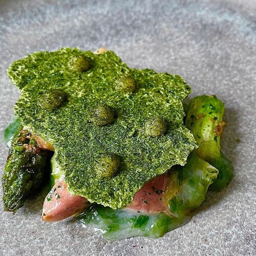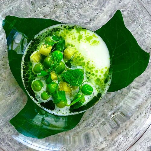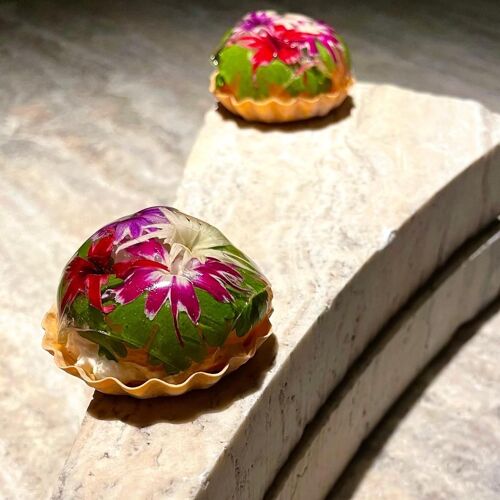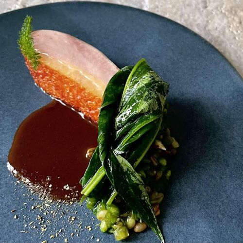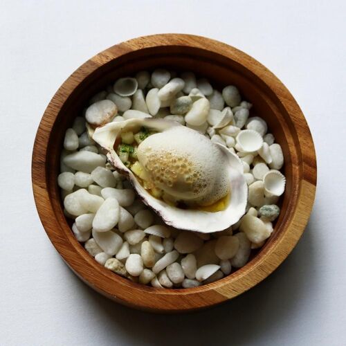 The gastronomy of Chef Tatsuhiro Takayama blends a passion for learning from nature with a modern sensibility. To attune his work to the sense of the seasons, he adds layers of texture. His spring ‘Sakuraniku, Sansai’ accents the bitterness of spring vegetables with the texture of buckwheat groats. The menu lists only the ingredients, as a mark of respect to the foodstuff producers. Natural rock tables and wooden ornamental plates eloquently convey the chef’s love of nature.