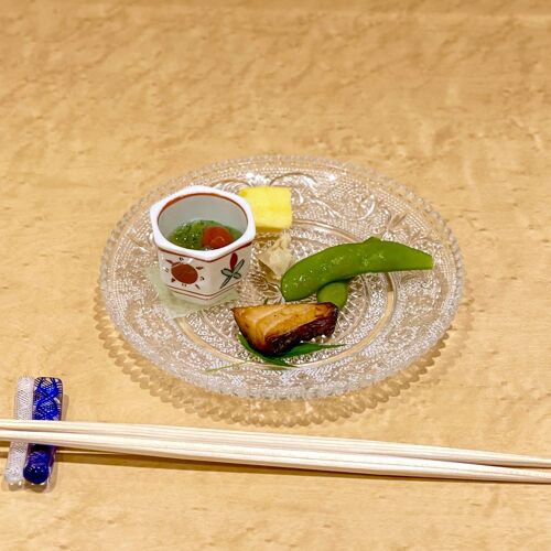 Looking at the extensive menu, it’s fun to ask the chef which items he recommends. The cuisine runs the gamut from old-school Japanese to creative Western dishes. Grilled celery with vinegar and miso dressing, bite-sized beef cutlets and crab cream croquettes are popular year-round. Like an Osaka kappo, the chef is happy to adjust salt and portion size to suit customer tastes; like a ryotei, items are beautifully plated on attractive serving-ware.