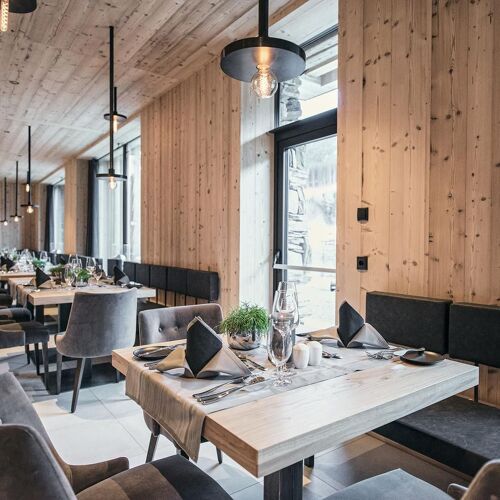 Situated near the ski slopes in the Gourmethotel Tenne Lodges, this restaurant is decorated with a profusion of wood. The large dining room is the backdrop for delicious modern cuisine which is regional in focus yet also influenced by the chef’s professional experience around the world. Excellent wine list offering plenty of choice, plus a stone wine cellar which makes a charming setting for a pre-dinner drink.