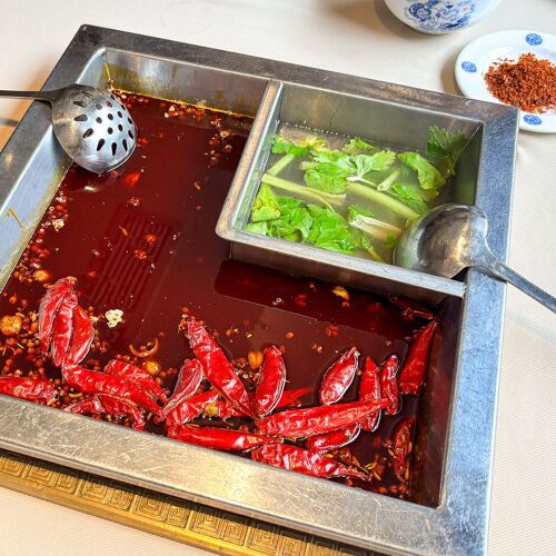 For over 20 years, this no-frills restaurant has had a single item on the menu – authentic Chengdu hotpot. Diners have never get bored because of the 18 soup bases and the stunning variety of dipping sauces, meat, offal, and sea and river fish on offer. Don’t miss the pencil-width strips of crisp, juicy Emei eel. The mala soup base is infused with Chinese herbs, perfect for blanching celtuce or pork cracklings. Their appetisers and snacks also hit the spot every time.