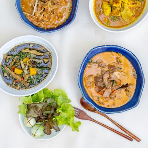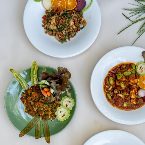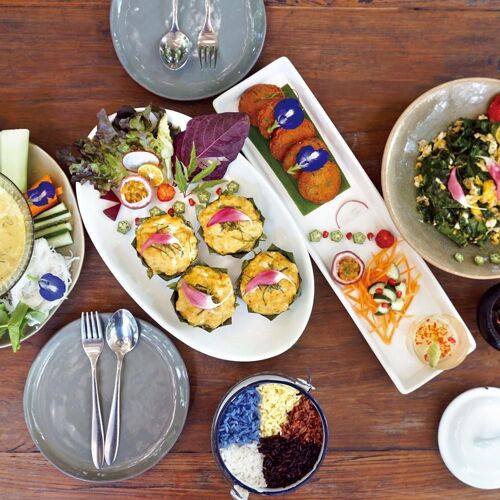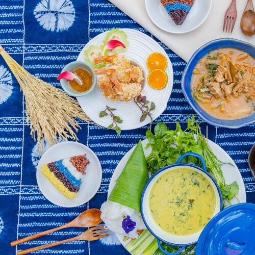 Tucked away in the creative hub of Lhong Him Kaw in San Khlang, Meena is a rustic countryside retreat just outside Chiang Mai. The restaurant is best known for its bright five-coloured rice, served with home-style Thai and Northern Thai dishes, including unique creations such as pork ribs with longan curry – a spicy, rich and subtly sweet dish. The open-air setting surrounded by greenery is conducive to slow, relaxed dining.