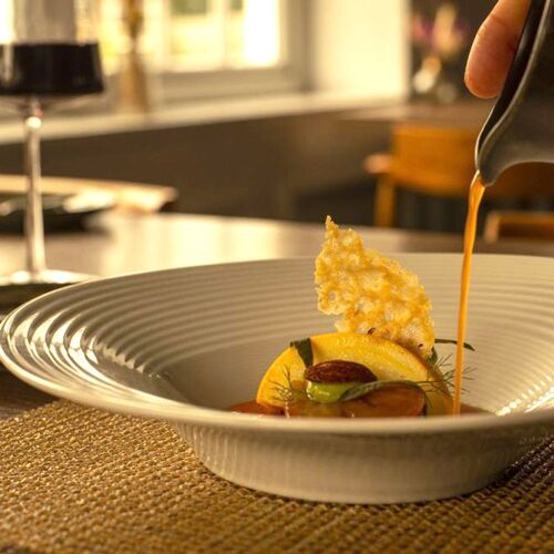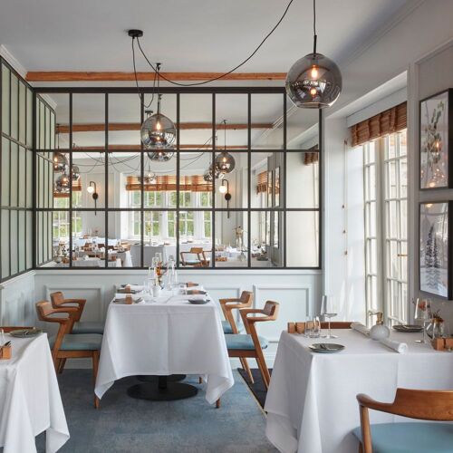Located in the old canteen of a 19C silk mill, Darleys offers a great view out over the river and the weir. It’s a stylish place with eye-catching décor; ask for a table on the narrow terrace or one beside the window on the upper level. Appealing dishes are creative and generously proportioned.