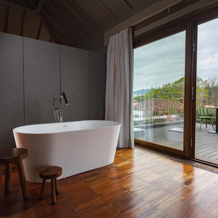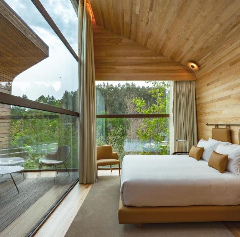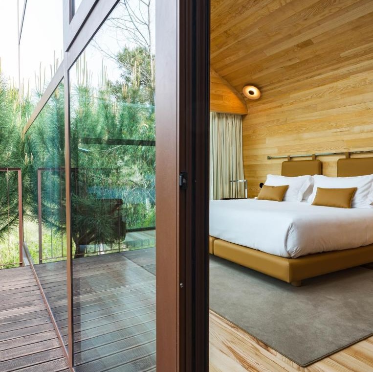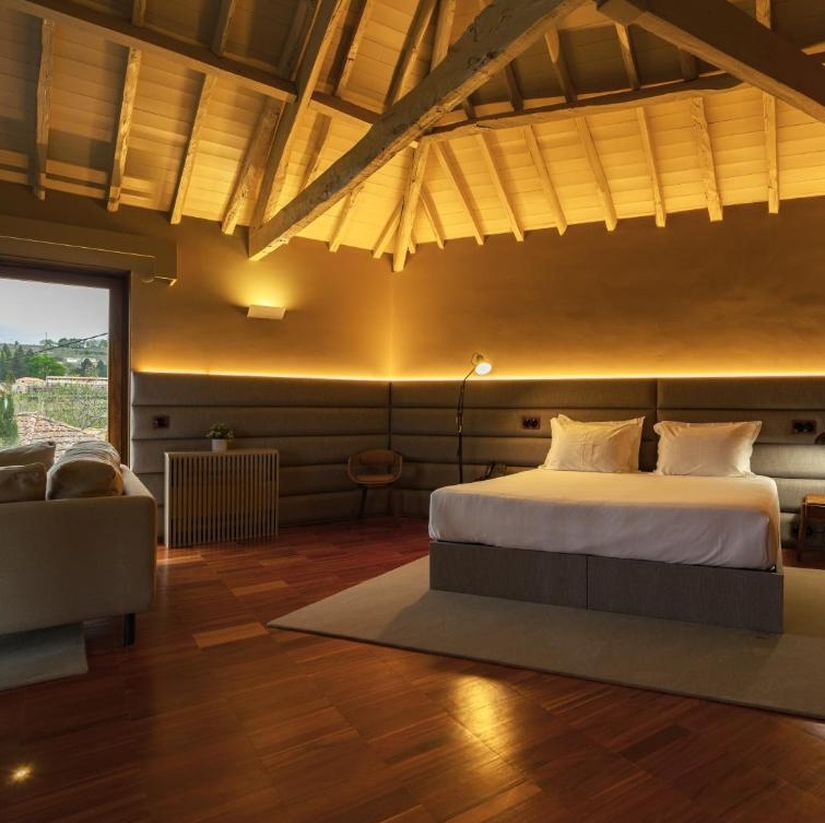 With its architecturally bold style, natural setting, and comprehensive facilities, Lavandeira Douro Nature & Wellness is a modern-day country retreat in the heart of the Douro Valley. Design-forward accommodations are housed across the main manor house, the Casa das Vinhas overlooking the vineyards, the contemporary country houses known as the Casas Origo, and the Brandas buildings, which put a modern spin on traditional rustic cabins. The spa has been carved into the hillside to blend in seamlessly with the natural surroundings, and comes fully equipped with treatment rooms, a Turkish bath, a sauna, a gym, and an indoor pool. Elmo Restaurant highlights traditional Portuguese comfort foods such as stews, broths, and classic codfish and rice, complemented with herbs and vegetables harvested daily from the hotel’s own organic garden, and No 1871 Bar & Lounge serves Portuguese drinks and snacks out on the outdoor terrace.