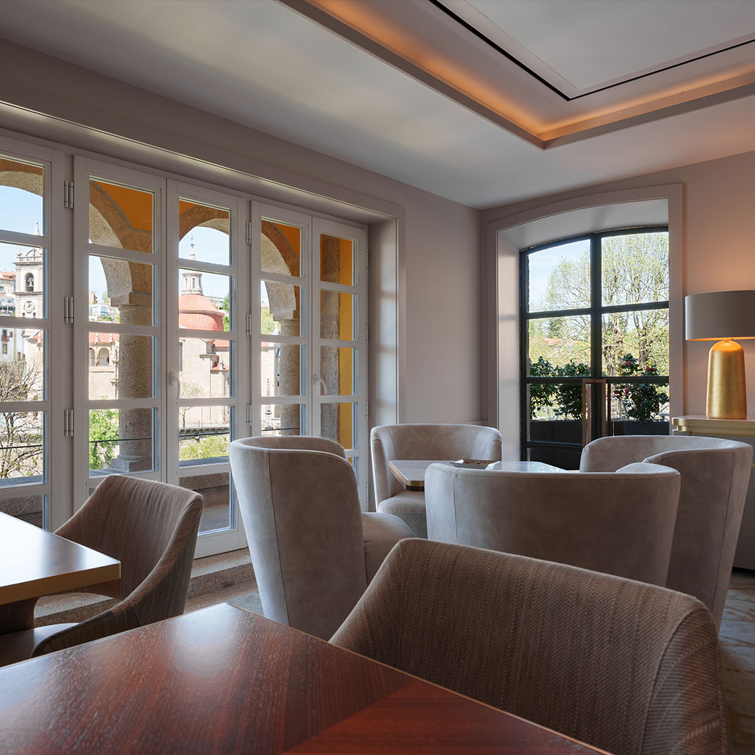 An hour inland from Porto, along the banks of the River Tâmega, is the historic city of Amarante, among whose well-preserved treasures is the 16th-century Baroque palace that’s now the Casa da Calçada. And while the house itself has been lovingly preserved, its 35 rooms and suites feel free to express their 21st-century personalities — the look is crisp, contemporary, a minimalist counterpart to the palace’s maximalist grandeur.