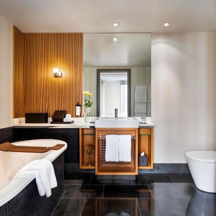 This is not a difficult life. The in-room comforts are legion, and the ubiquitous soaking tubs are not bad either. The spa and wellness center are modern and more than suitable given the hotel’s modest size. A couple of stylish restaurants and lounges come close to completing the package — add one high-end flagship restaurant and this place would be absolutely self-contained. Then again perhaps that’s the point — one seam left un-sewn, as an entry point into the city.