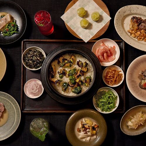 What more could you want out of this little charmer in East Village? Always on the move, Hand Hospitality delivers again with a nicely pitched and portioned set menu of comforting Korean flavors. Find sleek degrees of refinement in winners like asparagus and lobster resting in a chilled pine nut sauce or snow crab wrapped in a thin cigar of daikon and set in a warm crab broth. All entrees like grilled duck with endive and black garlic puree come with banchan and a welcome bowl of rice and soup, which are kept warm in three cauldrons at the bar up front. Dessert is extra but worth ordering: A generous scoop of misugaru ice cream with rice caramel and cookie crumble is a sweet finale in this narrow, minimalist dining room.