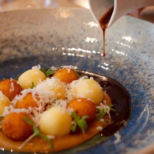 Grégory Ménard and Lucile Voisin (Choko-Ona and Grand Hôtel de Saint-Jean-de Luz) have converted this former fishmongers into a cosily dinky restaurant steeped in stylish appeal. The tasteful interior sports warm terracotta walls, linen-coloured banquette seating, pale wood tables and fine tableware: hand-crafted Basque silverware, cutlery and ceramics. The menu is inspired by the availability of fresh local produce and the chef’s boundless creativity. Pyrenean trout, marbled in squid ink and beetroot pickles; Kintoa pork and Iberic pancetta, medley of artichokes: flavour, colour, hard work and a dash of creativity.