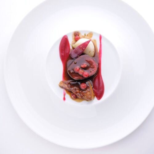 Piped baroque music and service on trolleys recall the goodness of French restaurants in the old days. As befits a restaurant managed by a Yamanashi winery, grape leaves adorn the walls and the company’s own wines are served. A devotee of classic cuisine, the chef excels in dishes baked in pie crusts, and is generous with sauces. The fruit that decorates the tables can be made into crêpes Suzette.