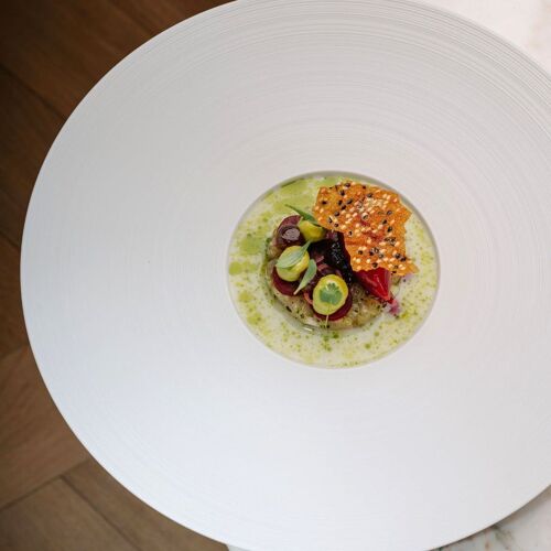 A meal in this former solicitor’s home oozing in character will be one to remember. The stylish interior, which sports a refined Renaissance slant, and the garden are a treat for the eye. Your tastebuds will be pampered by chef Warren Vandevelde who demonstrates just how much his carefully crafted cuisine is in line with the zeitgeist. The chef works tirelessly to create surprising associations, constantly adding new twists to familiar flavours. For example, he may pair a tartare of warm langoustine with a tomato coulis, a langoustine bisque and sea lavender oil. The lunchtime menu is not be missed!