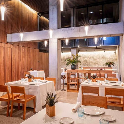 Cobo Tradición is located in the medieval heart of the city, just a few metres from the emblematic 15C Casa del Cordón. Here, as part of a complex called Cobo Estratos, you’ll find an interior with an avant-garde design where the striking staircase and kitchens (also home to the award-winning Cobo Evolución) are the two standout features. The à la carte of traditional dishes has been brought impressively up to date and includes classics such as grilled and fried “morcilla de Burgos” (black pudding) with roasted peppers and sea salt, and the superb braised scallops with herb oil and Iberian pork cheek.