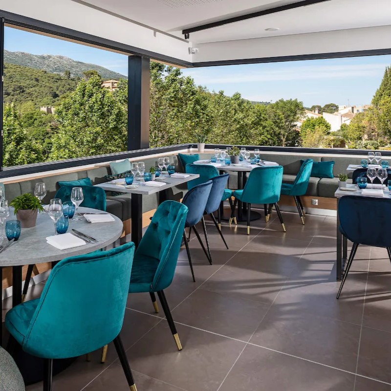 Don’t miss the south-facing pool, which offers the perfect place to wind down after a long day exploring the countryside and even more views of the sprawling terrain. The hotel’s restaurant, headed by Mateus Marangoni, is also a treat, and features both indoor and outdoor seating. Marangoni’s menu showcases traditional French dishes with creative twists inspired by the cuisines of countries as distant as Brazil, Japan and Thailand — distilled each day into four unique starters, eight main courses, and four desserts.