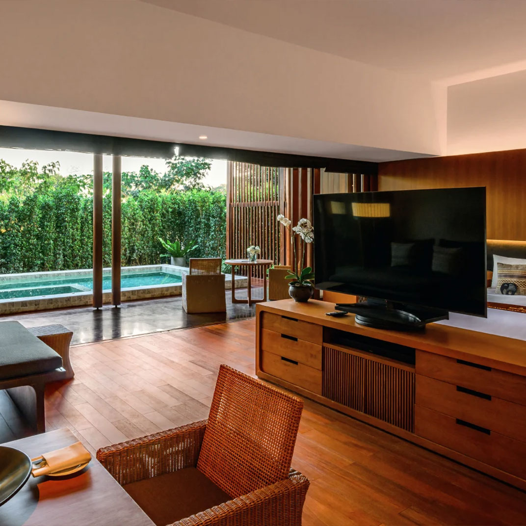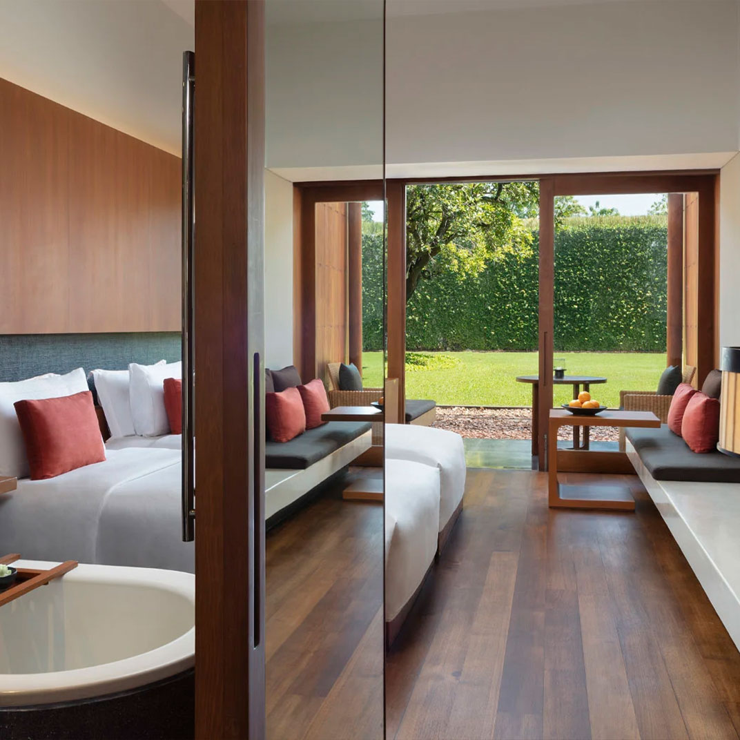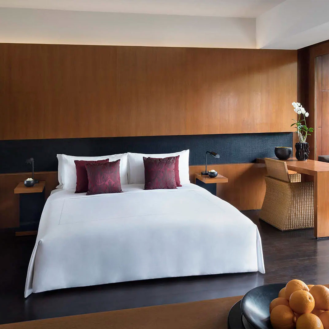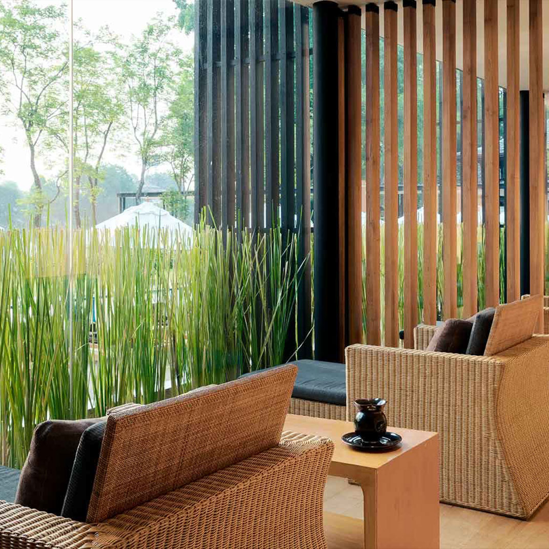 Anantara Chiang Mai Resort & Spa is built around what was once the British Consulate building: in the courtyard behind sits an open-air restaurant, and the rooms and suites stretch along the perimeter. Once past the facade of the consulate building, don’t expect a colonial look — the accommodations are modern in style, sedate and restrained in warm colors and teak and terrazzo floors. The Deluxe rooms are spacious, with sizable balconies and eye-catching red-brick bathrooms, and the Club Suites are twice as large, with indoor sitting areas, balconies with daybeds, and private butler service. All are furnished and outfitted like sophisticated urban apartments; no desert-island chic, just polished surfaces, sleek modern furnishings and flatscreens.