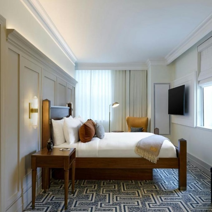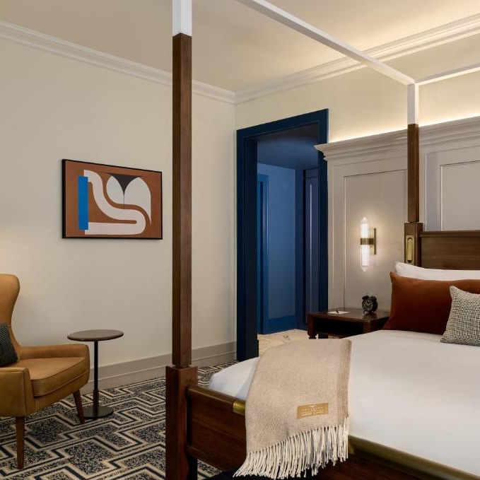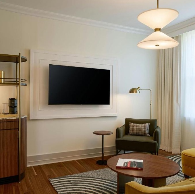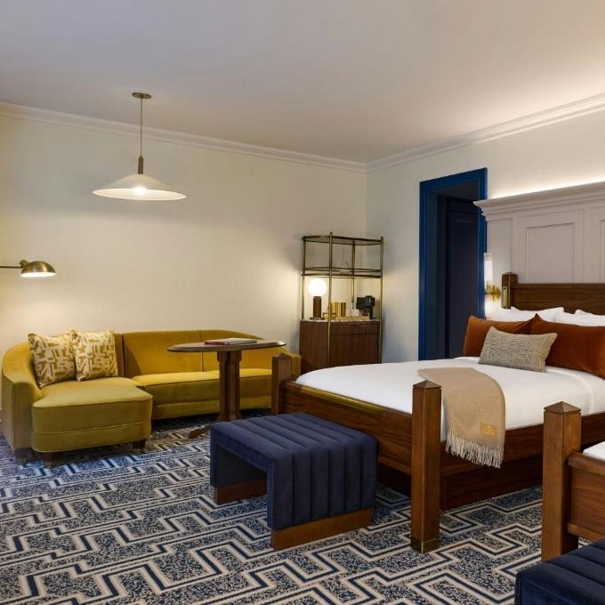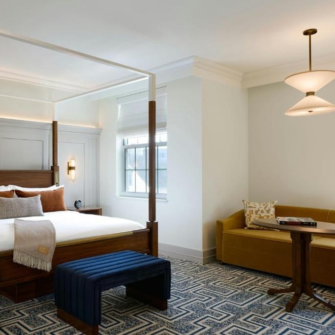 Commissioned by Henry Ford in 1931, the Dearborn Inn was a showpiece of its era and among the first airport hotels in the United States. Nearly a century later it still carries that sense of invention, with restored interiors that highlight Ford family archives, original marble fireplaces, and artifacts that range from vintage menus to a signed note from Walt Disney. Rooms and suites echo the inn’s heritage with stately proportions and thoughtful updates, while Clara’s Table reinterprets recipes from Clara Ford’s own collection. For a nightcap, the Four Vagabonds bar channels the spirit of Ford’s legendary road trips with Edison, Firestone, and Burroughs, proof that the inn is as much about storytelling as it is about hospitality.