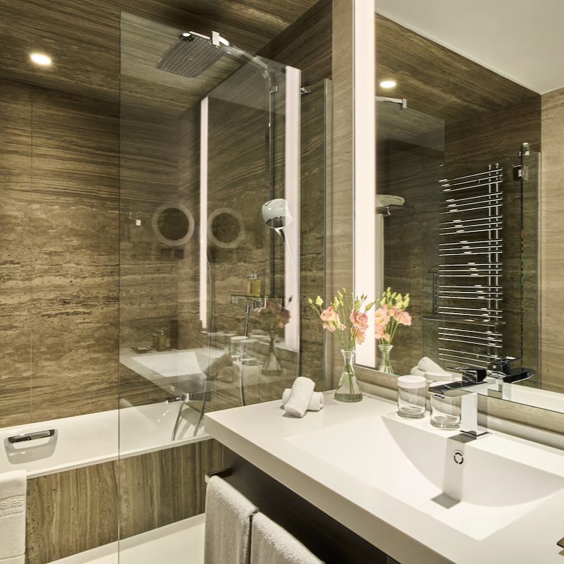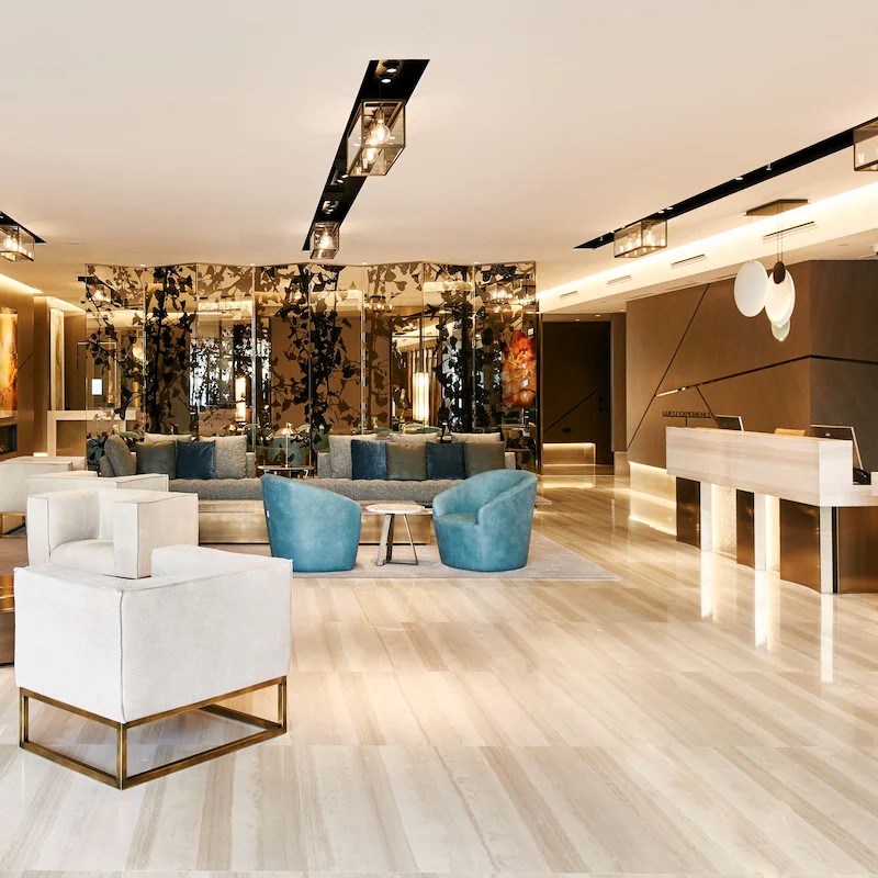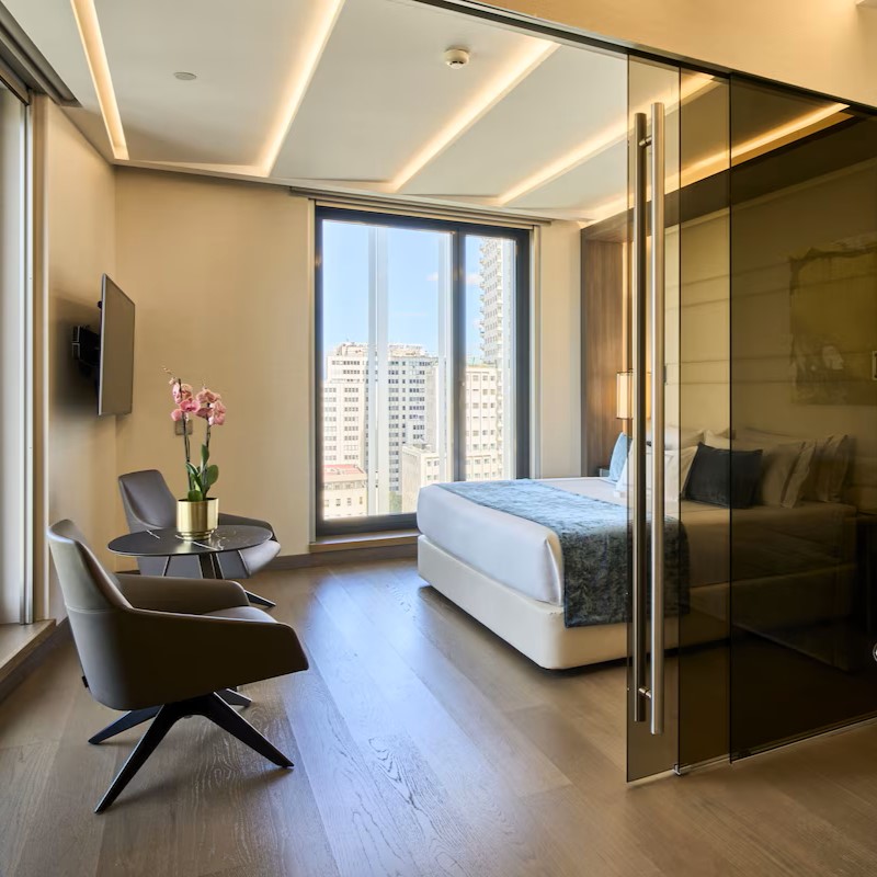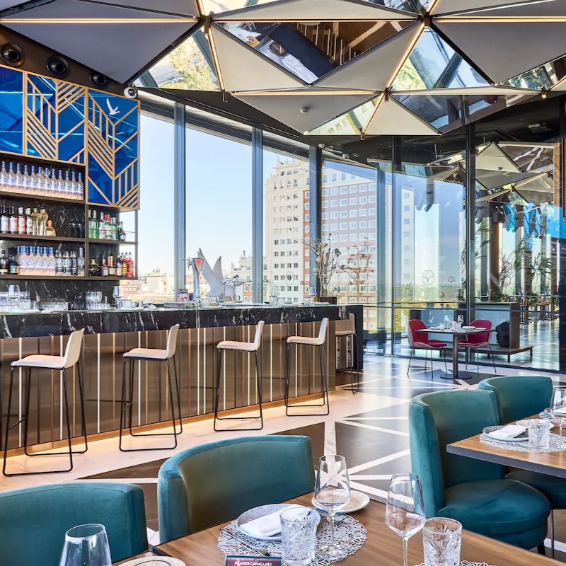 Even among stiff competition in Madrid, the VP Plaza España Design stands out. It’s a rare high-rise hotel, and it does much to justify its high profile; its public spaces are short of monumental, beginning with the liquid-metal sculpture that dominates its atrium, and its rooms are handsomely glossy and suitably luxurious, outfitted with luxe details like rain showers and L’Occitane bath products. The views from within the accommodations are impressive enough, but the finest ones are reserved for the rooftop pool and for Gingko, the top-floor restaurant and bar, which is one of the neighborhood’s hottest tickets.