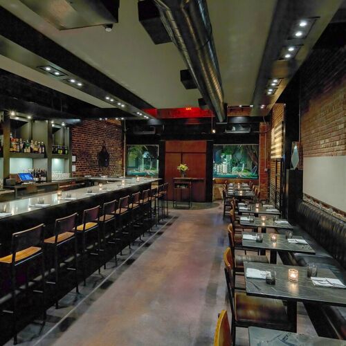 Owner Scott Crawford lends his name to this restaurant in Raleigh's beautiful, historic Oakwood neighborhood. This classic American place emanates an upscale, neighborhood feel, where a long bar counter dominates one side, and a banquette set with black marble-topped tables runs along the other.
