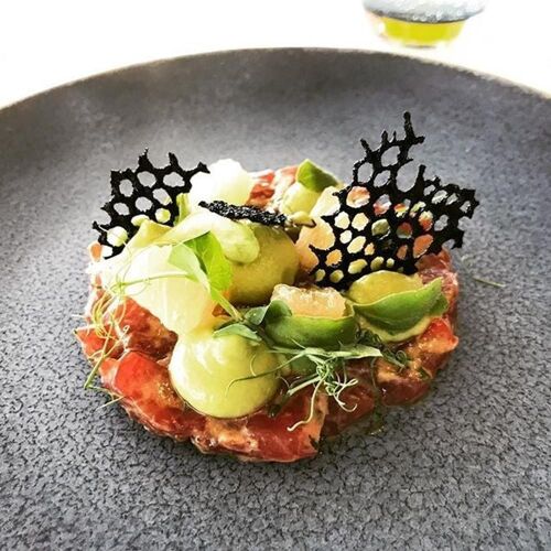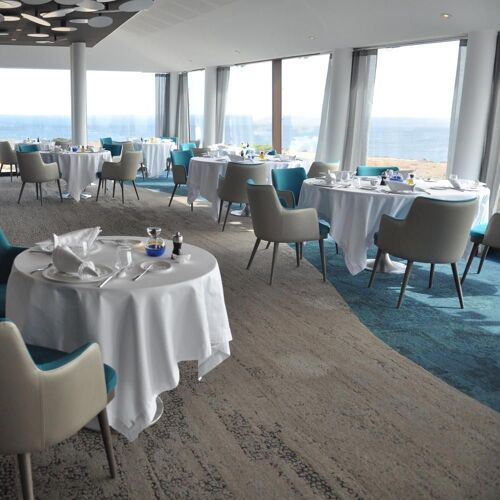 Erwan Houssin and his pastry chef wife, Pamela, decided to drop anchor here in Leucate, which is hardly a surprise when you see the view that embraces the Sète coastline as far as the Albères mountains. Born in Brittany, Erwan grew up in the Hérault mountains and is perfectly at home with meat and fish from Languedoc to Roussillon, even going as far as Galicia sometimes. He picks the wild fennel, thyme, rosemary and savory himself on the nearby cliffs, creating incredible herbal teas, jus and sauces. Some of his signature dishes include shellfish served with baby leeks from Elne and an acidic velvety green emulsion of plankton; Mediterranean greater amberjack lacquered in black olives, runner beans in confit garlic and Lagrasse vermouth-spiked sauce; Burlat cherries poached in sweet spices, Tahitian vanilla-laced rice pudding and yoghurt and basil sorbet. Pamela’s trolley of sweet titbits at the end of the meal is to die for!