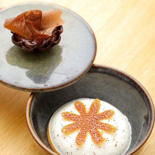 The place is named after Abbé St Crescent, who in the Middle Ages opened his doors to pilgrims on the Camino de Santiago. The arcades and bare stones may be a throwback to the distant past, but today the decor is ultra-modern, with finely crafted black and white polished concrete floors and sculptural one-piece seats. Lionel Giraud, son of a restaurant owner, is a strong advocate of locally sourced produce. An inventive chef, he honours ingredients from the most noble (Mediterranean red tuna) to the most modest (green beans) and everything in between, such as an authentic Corbières buffalo mozzarella. He is also a proponent of ikejime, the Japanese method of killing fish that maintains the quality of the meat and is argued to be more humane.