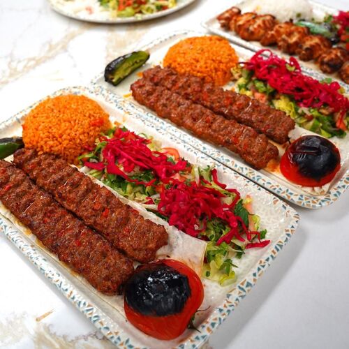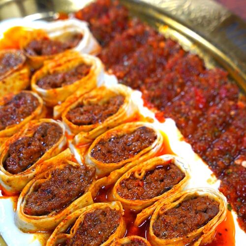 On name alone, you can bet that nobody leaves this restaurant hungry. Kebabs charred over glowing coals, meats spinning on a spit, and fluffy, dome-like rounds of pita cooked in a wood-burning oven are served here in abundance. Such is the appeal of this local favorite that has fed families well for years. In fact, it’s not uncommon to see large groups huddled around a feast that covers every corner of the table. Tiny poached beef dumplings coated in a garlicky yogurt sauce (kayseri mantısı) could be a meal of their own. Flatbreads topped with everything from tomatoes to ground beef add to the carb-loading. The menu is lengthy, but servers are quick to make suggestions. There’s rarely room for dessert, but there’s always a place for hot tea.