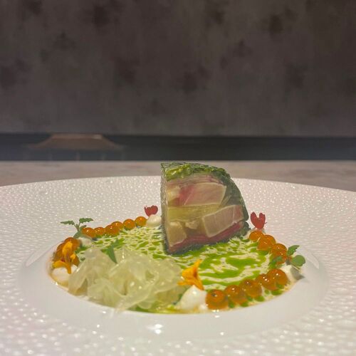 The name of this French restaurant denotes respect for the farmers, fishermen, and potters who support the chef through their work. Prix fixe offerings use Japanese and French ingredients, refined through the skills the chef honed in Paris. Amuse-bouche items include tartare of wagyu beef and wafer cake of pickled daikon radish; in homage to Japanese tradition, the meal ends with a rice dish. Main dishes incorporate the classics, with duck wrapped in pie pastry as the standard.