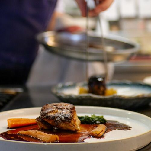 Although a little out of the way, this restaurant enjoys an enviable location overlooking Plage de la Birochère, whose sandy cove surrounded by rocks is visible from the restaurant. Chef Sylvain Belouin and oenologist and sommelier Valérie Belouin are the brilliant couple behind this Pornic institution. The experienced chef (for a decade, Sylvain headed up the kitchens at Le Pigeon Blanc in Vern-d'Anjou, where his efforts were crowned with a Bib Gourmand) certainly knows his stuff. His simple way of treating guests to dishes centred on local ingredients, meat (pigeon, pig) and fish, eg his beautifully crispy sole meunière, is testament to this. The wine list features 500 wines (mainly biodynamic). Laid-back and friendly service.