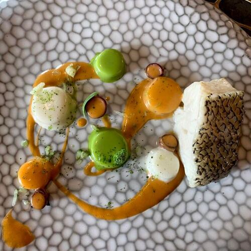 A culinary experience in every sense! From the moment you enter you are guided through a surprising sequence of flavours and sensations that include stunning appetisers in the garden and the Living Lab, a collaborative space in which the restaurant works with IMIDA (The Murcia Institute for Agrarian and Environmental Research and Development) to grow and revive native species that are almost extinct (“Ciezana” aubergine, “Flor de Baladre” tomato”, cowpea etc). You then continue to the spectacular modern dining room with its surprising setting in a huge thatched hut. Here, you savour main dishes that are in perfect harmony with Murcia’s culinary traditions such as Chato Murciano pork with the traditional “olla fresca” (accompanied by a pork jowl sandwich). Chef Pablo González’s creative cuisine is showcased on two tasting menus (Olivo and Experience) that constantly reference regional recipes and stand out for their presentation. Dessert and coffee can be enjoyed on the terrace overlooking the lake.