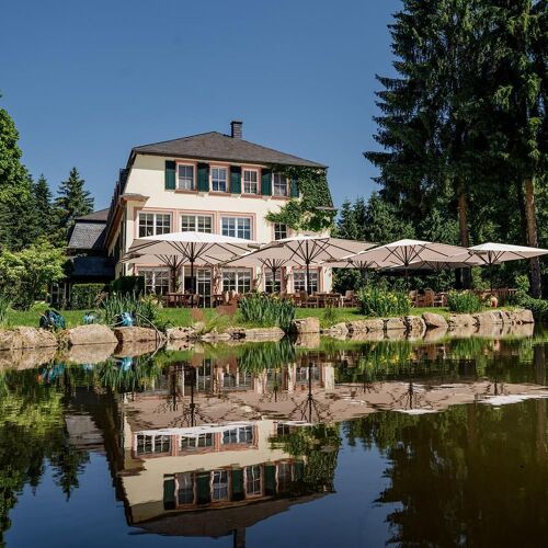 The charm of this country house makes itself felt as you approach via a small bridge – it is safe to say the character of the idyllic old mill has been successfully preserved! Ruth and Harald Rüssel clearly put their heart and soul into running their hotel and restaurant. The chef-patron and his talented kitchen team propose a five- to seven-course set menu. Diners are won over by the quality of the ingredients, which they prefer to source from local producers; they even hunt their own game. The classical foundations of the cuisine always shine through, but are elegantly complemented by creative flourishes that never come across as fussy or unnecessary. Try out the surprising wine pairings – they tend to recommend fine Moselle wines. Head to the terrace to sit by a small lake! They also have appealing guestrooms.