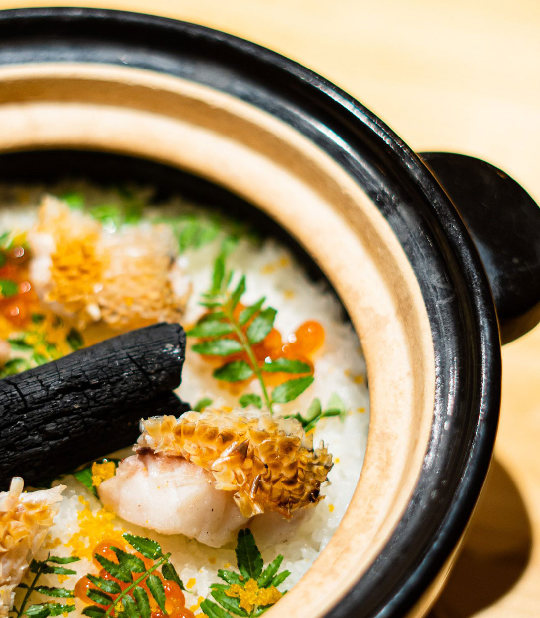 Inspector notes: "Think delicate tarts with wagyu tartare, grilled sawara with beet and pomegranate sauce, and a particularly striking king crab rice cooked in a donabe."