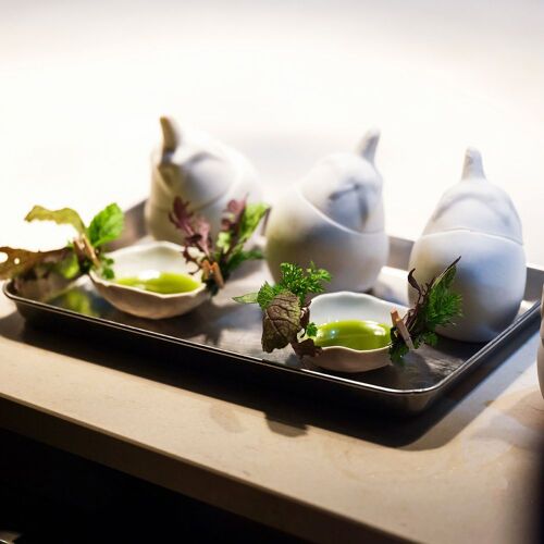 After stints in the kitchens of top establishments and the French embassies of London and Bamako, Nicolas Guilloton has turned his ‘workshop’ into a stylish, contemporary venue. The African masks decorating the spacious dining area are a nod to the chef's time in Mali. With Thomas Belval, his steadfast right-hand man, he delights diners with surprise menus that showcase his flair for balanced flavours and his commitment to locally sourced ingredients. The resulting repertory is original, high-flying, filled with flavour and demonstrates a savvy style when it comes to veggies. The lunchtime menu is a steal. The wine cellar reflects a genuine quest for eco-responsible producers.