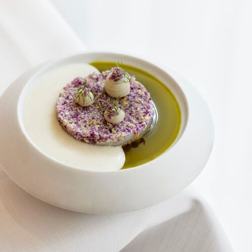 De Kristalijn cannot fail but catch the eye. The modern edifice in which it is housed seems to hover over the surrounding golf course. Floor-to-ceiling windows command knockout views, while trendy furnishings and designer lighting underscore the establishment’s stylish character. Seasoned chef Koen Somers weaves his magic in the entirely open-plan kitchen as he crafts food depicted by purebred technique and generous ingredients. The chef harnesses his creative streak in a painstaking and precise approach to cooking. Premium seabass is cooked in its skin for crispiness and flanked with a medley of salsify and apple soufflé, stuffed with potatoes and dressed in caviar. The exquisite butter sauce is further intensified and exalted by dashi and bonito flakes. The chef cannot be equalled for his knack for rich nuances. You can expect a fascinating culinary experience, all of which is paired with amazing vintages from the outstanding wine cellar.