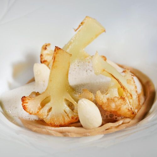 Visiting Guimarães is like diving into Portugal’s history, a city revered for its historical importance in the country and acknowledged as “the birthplace of the Portuguese nation”. Located in the Hotel da Oliveira, right next to the impressive Church of Nossa Senhora da Oliveira, this venue boasts a classic décor, highlighted by stone walls and ceilings adorned with wooden beams. The culinary offering, designed by Chef Vítor Matos and overseen daily by Chef Liliana Moura, showcases a modern and creative cuisine with Mediterranean touches, taking traditional roots as its reference point. The menu, which includes some vegetarian dishes, is rounded out by two tasting menus (Raízes [“Roots”] and À Descoberta [“Discovery”]).
