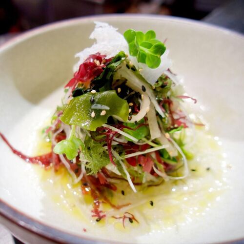 Set along a bustling stretch, Village Sake is a mighty hot and mod izakaya delivering authentic goods in the heart of quaint Fairfax. All the classic small plates are in full force here: crisp and creamy takoyaki (octopus croquettes), okonomiyaki, tataki (made with silky smoked hamachi) and coconut mochi cake complete with cardamom gelato. If you must have sushi, there’s a small selection of excellent nigiri, too—make sure to sample the shima aji and kinmedai.