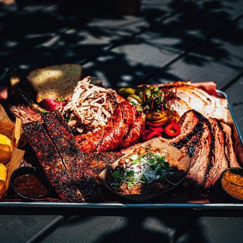 Punctuality is of the essence as everyone is here, early and eager, for Chef/owner Daniel Castillo's food. His creations draw inspiration from central Texas, so when that sweet scent of California white oak gets going, find yourself transported on a riotous journey, starting with slices of glistening brisket—correctly charred and deliciously rich. Add on a side of chili with more brisket along with a cheddar-jalapeño biscuit and never look back again. Don't forget to save room for desserts like banana pudding or pineapple upside down cake.