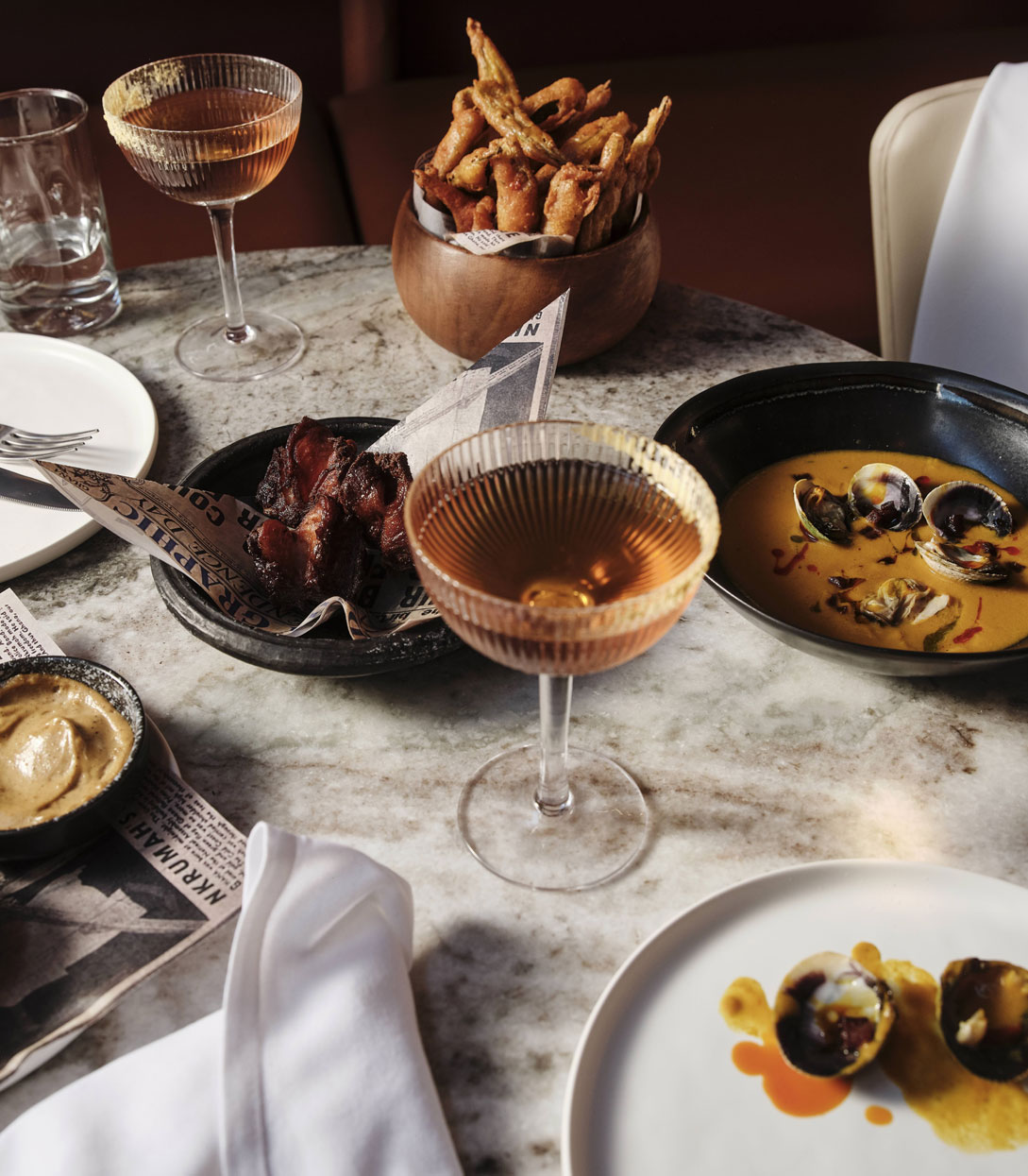 Chef Sanjay Mandhaiya takes diners on a journey along the Silk Road at Karravaan. The wide-ranging menu promises bold flavors and generous portions intended for sharing. To begin, swipe the smoky eggplant dip, layered with labneh and pureed Italian eggplant with caramelized onions and pomegranate seeds, onto a piece of piping hot, house-made flatbread for a delicious introduction to the meal. Then, perfectly cooked, medium rare duck breast glazed with harissa honey is set over a bed of forbidden rice for a particularly skillful dish. Fluffy jasmine rice tucked with seasonal vegetables is served within a colorful tagine for an impressive dish that pleases the eye and the palate.