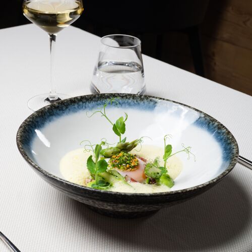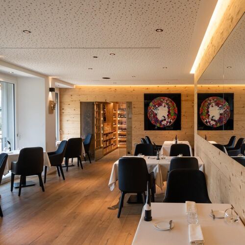 The small fine dining establishment of Les Montagnards Hotel commands a jaw-dropping view over the Moléson and the Château de Gruyères. Diners enjoy modern cuisine by Kaiichi Arimoto, a Swiss-trained chef who boasts a stint with Peter Knogl in Basel’s three-star Cheval Blanc. Arimoto’s subtle, expressive score never fails to deliver, courtesy of premium ingredients, spot-on technique, a focus on flavour and an aversion to gimmicks. Examples: gambero rosso, silky beurre blanc, wild salmon roe; suckling lamb, spinach and paprika-flavoured broad beans. Slick service and insightful wine tips. Guestrooms are available for those interested in hiking around the glorious countryside.