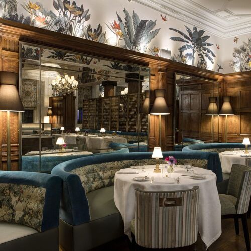 Located inside Brown's, a quintessential English hotel, this intimate restaurant is one of the most beautiful traditional dining rooms in London, thanks to the keen eye of hotelier and designer Olga Polizzi. Wood panelling and deep armchairs combine with bright splashes of colour, including animal-adorned wallpaper that pays homage to The Jungle Book, which was apparently written by Rudyard Kipling when he stayed at the hotel. The menu, overseen by Adam Byatt, is British with a Mediterranean slant, meaning you'd do well to order the homemade pasta.