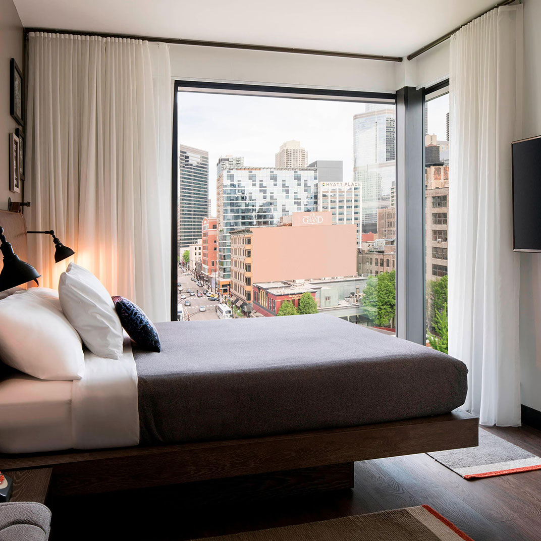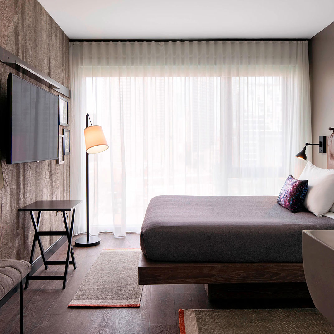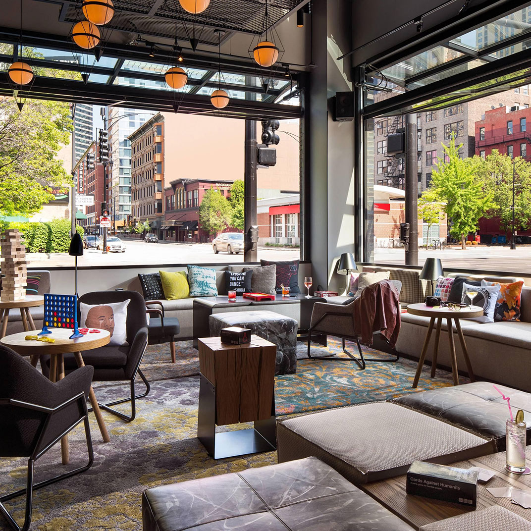 The buzzy setting of Chicago’s River North neighborhood, which is packed with nightlife, restaurants and art galleries, is well suited to the younger vibes of Moxy Chicago Downtown. Bar Moxy is the heart of the hotel and doubles up as a co-working space by day kitted out with USB and power outlets. Come evenings there’s local beers and wines on the menu, signature cocktails, Friday and Saturday night DJ sessions, and Zombie Taco for grabbing dinner. Other amenities include a gym, a games room with shuffleboard, foosball, and classic arcade games, and a podcast booth with state-of-the-art recording equipment.