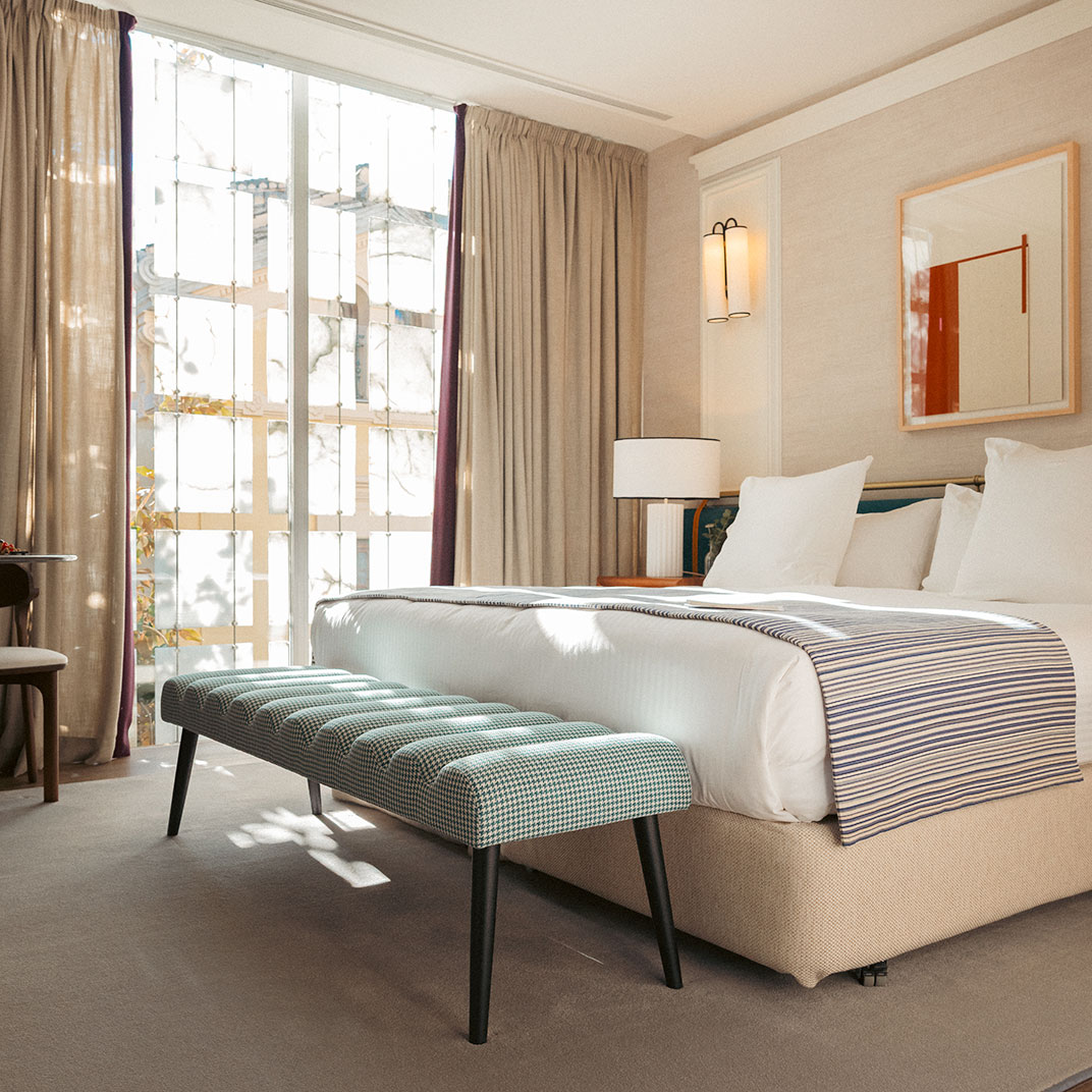 Somewhere in the middle ground between history worship and idol-smashing avant-gardism lies a place like the Palacio de los Patos. In frontal view, it’s a 19th-century palace, utterly authentic, marble staircase and all; behind this, though, stands a brand-new modern addition — not the sort of dismal annex that mars an otherwise gorgeous historic hotel, but a stunning and urbane piece of modern-luxe hotel design.